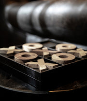 3-på-rad-spill designet med en elegant skinnramme og spillbrikker laget av mangotre av høy kvalitet.